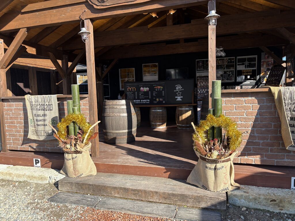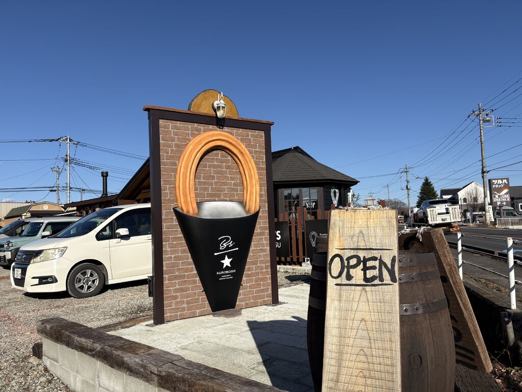 那須にチュロス専門店があるとのことでせっかくなのでお土産を買いに訪問しました。通り沿いにわかりやすい看板があります。お店前には時期なのでチュロス型の飾り付きの門松がありおしゃれです。私が買ったのはシナモンとカラーチョコのついたチュロス。持ち帰りでオーダーして丁寧に袋に入れてくれました。受け取り札もチュロス型でふ。子どもたちの反応はサクサクで美味しい!とのことでした。 (訪問:2025/12/28)