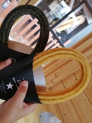新しいお店ということで気になって行ってみました。大きいチュロスの看板が目印です。米粉のチュロスは初めてでした。クロボシという店名にちなんでドリンクカップのデザインにも黒い星が描かれていてオシャレだなぁと思いました。 (訪問:2025/06/07)