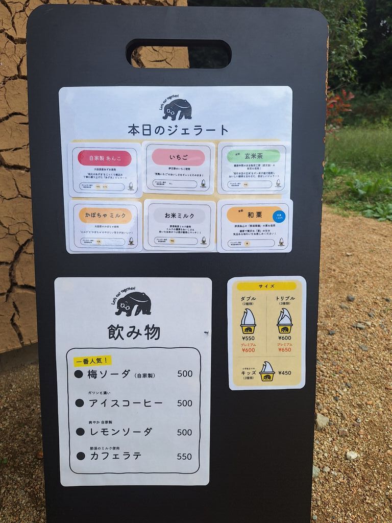 美味しいジェラートとたぬクーヘンを求めて13時前にお邪魔しました。ジェラートは前回なかったフレーバーに変わっていて、どれにしようか悩んでしまいましたが、『ジェラートダブル(玄米茶/和栗)600円』に確定。お米農家さんの作る玄米を、お茶とあわせてジェラートに。香ばしい香りとお味で癖になる逸品☆プレミアムフレーバーの和栗もほっくりしたお味のジェラートで、濃すぎず美味しくペロリ。なんとも美味しいランチ後のデザートになりました‼シーズンによって1~2種類フレーバーが変わるようで、うかがう楽しさが増えますね。ジェラートのあとはバウム。自分が食べるように『カップクーヘン350円』を、職場の人へお礼の品として『たぬクーヘンしっとり1700円』をゲット。カップの中にはしっとりとふんわりの2種類が2個ずつ合計4カット入っていますので食べ比べや、どちらかなんて選べない‼というお悩みにも対処。ふんわりもやっぱり美味しい^^けど、ラムが薫るしっとりバウムのしっとりが私の好み♪バウムを差し上げた方からもとても美味しかったと好評でした。バウムもジェラートも美味しく、大自然のなかでのんびり頂ける幸せ。是非是非またお邪魔します‼ (訪問:2025/10/13)