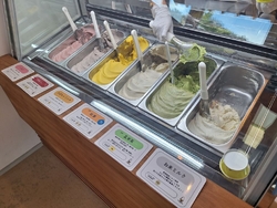 | ◇たぬジェラ 本場イタリアのジェラートマシンで作る、濃厚な味わいなのにスッキリした⽢さ。旬の素材を使った季節限定もあり! |