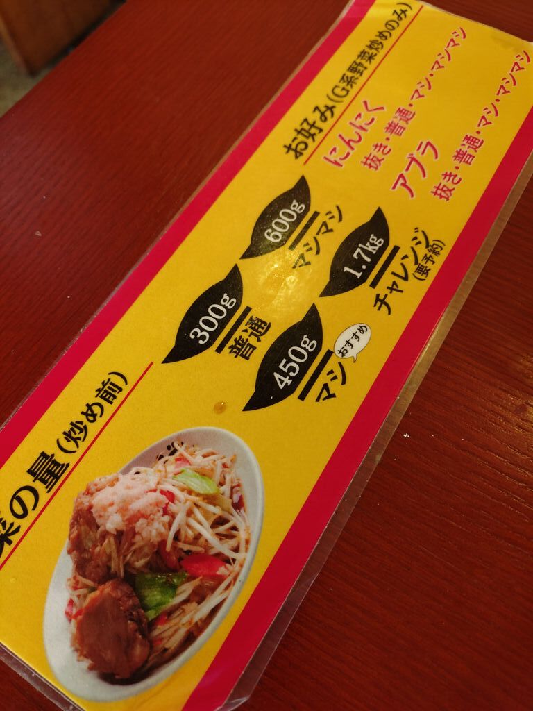 『たくうま』で陽南タクシー運転手さんが推しの店と言うことで訪問、ナビが連れて行った場所は何回か行ったラーメン屋『佳佳』さんがあった場所。お気に入りのラーメン屋でしたが閉店されたようです。駐車場、店内の造りも佳佳さんと変わらないから駐車場も余裕はあると思います。平日の夜の開店直後の17:40に着いたから先客は一組でした。自販機で注文し、発券されますがそのチケットを出さなくても厨房にデータが飛ぶます。それも野菜の量のみならず、ニンニク、脂の量までも抜き、普通、マシ、マシマシが伝わります。ニンニクだけマシにし、後は普通にしました。やや味付けが私的には濃かったが生卵幾つでも無料なので生卵2個を野菜に絡め、甘みを出しました。かつ、もうひとつ生卵を頂き、卵がけご飯にもしました。生卵を使いアレンジ出来るのは推しです。レバニラ炒めも気になったから次回はレバニラ炒めにします。 (訪問:2025/11/20)