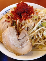 NEWこちらのお店の方は初めて行きました。ログハウス風の建物で駐車場もしっかり完備しています。並ぶ前に店内で食券を購入してから並びました。29日は肉の日という事で券売機の所にSNSのフォロー画面を提示するとチャーシュー肉が1枚プラスされると貼ってあったので、ベジ家さんをフォローしてるSNSを見せて分厚いお肉を1枚プラスして頂きました。G系野菜炒めの塩ダレと辛味噌を野菜マシと野菜マシマシで注文。生卵は食べ放題だったので2個頂きました。溶き卵を絡めて食べたりTKGにして食べました。食券を買う時点で野菜の量やニンニク等の有り無しを選べるのでニンニク抜きで注文しました。ボリュームあって食べ切れるか心配でしたが美味しくてペロリと完食しました。でも、さすがにお腹いっぱいになりました。店長さんもスタッフも気さくで笑顔が素敵でした。 (訪問:2025/11/29)