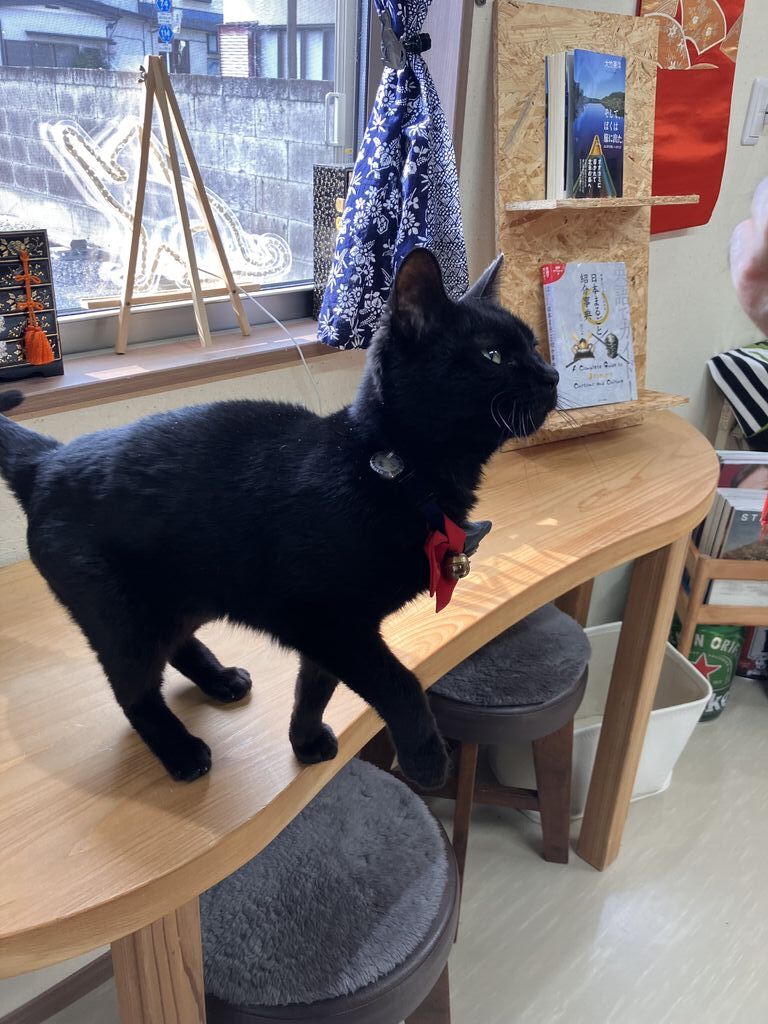 今年も残すところ1か月を切り、久しぶりにKURANEKOYAさんに神様と一緒にお邪魔しました。本日の猫スタッフは、いつものオーちゃんとくま副店長のコンビです。あたたかな日差しが差し込む店内には、クリスマスの飾りがいっぱい。見ているだけでワクワクしちゃいます。そして、猫さんの雑貨がいっぱい!あまりの可愛さに、眺めているだけでも幸せな気持ちになります。今回のドリンクは冬限定の「はちみつジンジャー」を、神様は「ホットチャイ」をお願いしました。あたたかな甘さが身体にしみわたります。以前、ミニチュア写真家の田中達也さんの本があり、神様がちょっと気になっていたのですが、次に伺った時には無くなっていました。残念だったね~と話していたら、店主さんが古本の棚から田中達也さんの本を持ってきてくれました。ページをめくる度に、思わずくすっと笑ってしまうような写真の数々に楽しい時間を過ごせました。この日は他のお客さんの来店も重なり、ちょっと賑やかな午後になりました。店主さんが奥から茶トラのミィちゃんを連れてきてくれましたが、あまり人慣れしていないようですぐに引っ込んじゃいました。とっても美人さんだったな~(男の子だけど…)また会えるかな。お土産に「もふもふブローチ」と「ピクルスのトンナート」を購入です。また、可愛い猫スタッフさんに癒してもらいに来たいと思います。 (訪問:2025/12/07)