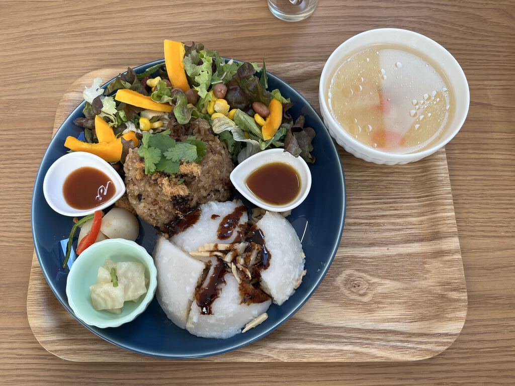 13時に来店。店内は賑わっていました。提供時間が30〜40分かかるとのこと。時間にゆとりがあったので提供時間まで店内でまったり。お店にある台湾の観光本も興味深い。私は千と千尋で出てきたというメニューコメントに惹かれてバーワンユウプンランチを選択。ユウプンもっちりで熱々で美味しい。バーワンは蒸すタイプ。ソースが美味しいお好みで付けるソースも美味しい。スープはあっさりの中に旨みが凝縮されていてとてもバランスの良いプレートで美味しくいただきました♪デザートももちろん美味しかったです♪ (訪問:2025/11/22)