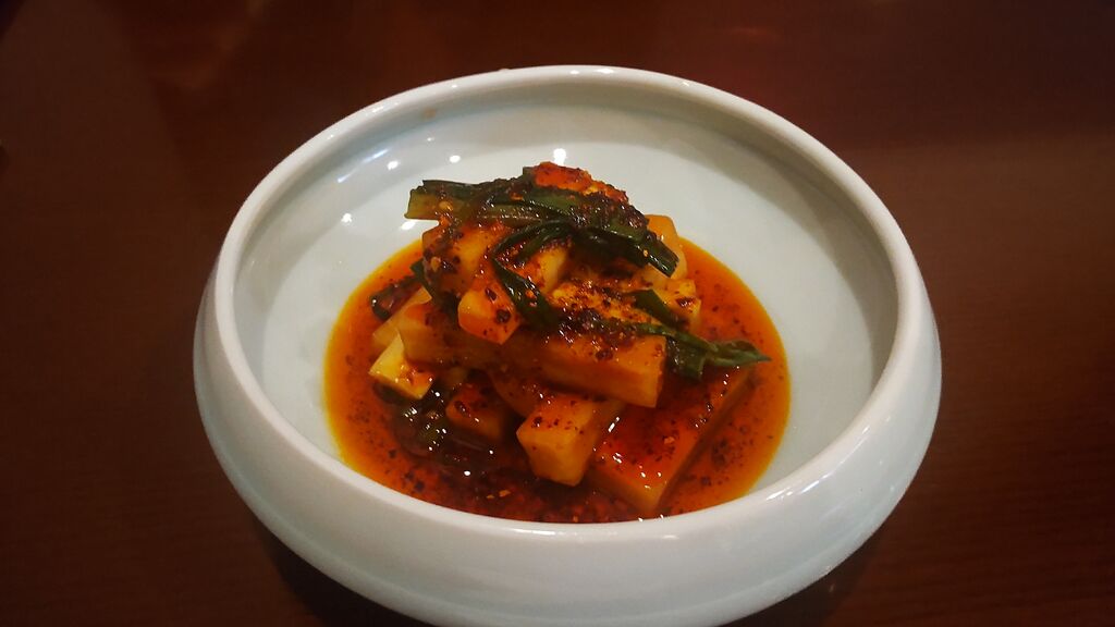 二度目のディナーです。大根と昆布の醤油漬け¥650は、見た目は辛そうだかそんなに辛くなく、辣油がおいしかったです。子持ち鮎のスパイス焼き¥850は、頭までやわらかく、卵がたくさん入っていてパリパリでおいしかったです。油淋鶏¥1400は、独特なスパイスの香りで見た目もかわいくておいしかったです。エビ春巻¥650は、前回も食べましたがやっぱりおいしい。酸菜魚¥1850は、酸っぱ辛くて山椒がきいてました。蟹肉と蓮根の水晶餃子¥600。ほうれん草と福建海苔の焼売¥550は、エビと豚肉も入っていて具だくさんでおいしく、海苔の香りが他にはない焼売でした。最後に海老チャーハン¥1200は、プリプリの海老とパラパラのチャーハンでした。他にはない中華料理屋さんで楽しめました。 (訪問:2025/11/16)