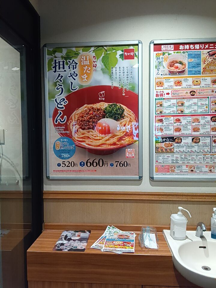 モバイルオーダーでオーダーしました。「すぐに受け取り」のオーダーで注文し、取りに行きました。既にに出来上がっていました。冷やし担々うどん(並)と唐揚げ3個、黒ウーロン茶を注文して990円でした。うどんがしっかり締まっていて、とても美味しかったです! (訪問:2025/04/19)