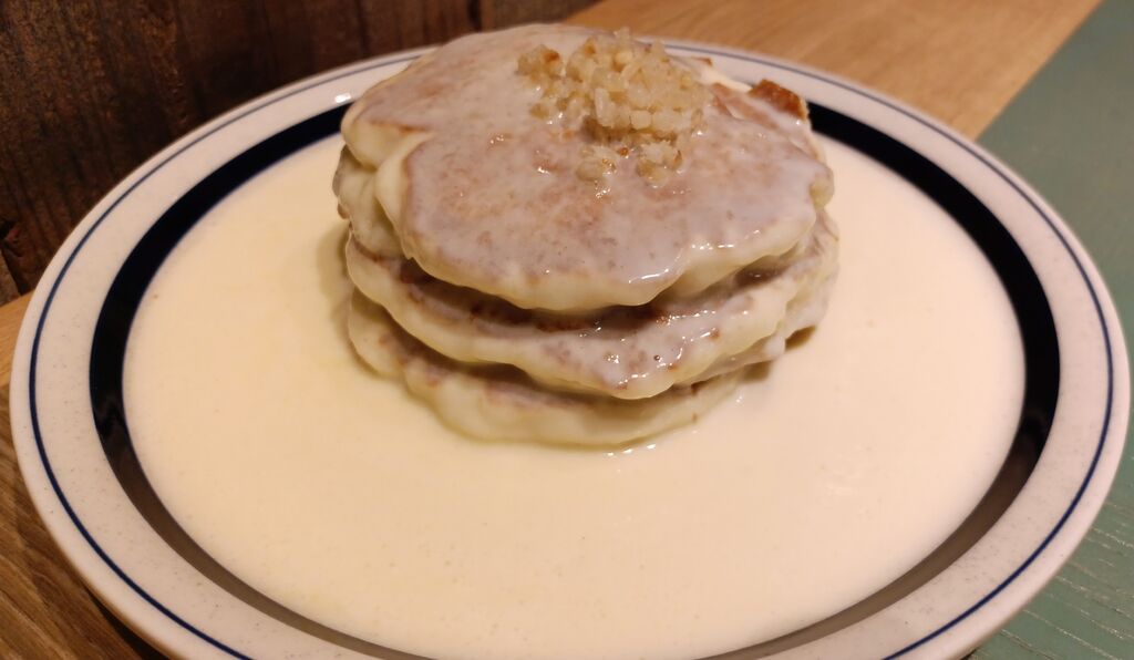 やっと訪問出来た~(笑)OPEN当時からずっと気になっていて店の前を通るたびに外まで並んでいた日々。ダメ元で行ってみよ~って事になりGO!運良く駐車場も空いていて入店~♫3組待ち位で通されました。パンケーキをメインで食べたかったので【マカダミアナッツパンケーキ】と【モチコチキン】をチョイス!パンケーキのソースは冷たいソースと温かいソースが選べて私は温かいソースをオーダー♫届いた瞬間の感想が、パンケーキがマカダミアクリームソースのお風呂に入ってるみたい(笑)と率直に思ってしまいました。パンケーキは軽い食感なので濃厚なソースとクランチマカダミアの食感が相性いい~(笑)コーヒー豆を砕いた物&ハニーシロップをかけて味変を楽しめるので最後まで飽きる事なく、ソースにパンケーキをヒタヒタと染み込ませながら食べちゃいました(ૢ˃ꌂ˂⁎)チキンはロコの定番メニューらしく(もち粉)をまぶして揚げてあり外はカリカリ、中はジューシーでやみつきになるチキン(笑)もう一品は【コズナチーズバーガー】何ともボリーミ~♫野菜たっぷりで牛肉100%、パティにチーズがとろけている姿に惹き付けられてしまい、一口パクリ!甘めのソースが全体に合っていて食欲そそる~。気づいたら彼は完食していました~(笑)ポテトはカリカリ、パリパリ食感。ドリンクメニューも豊富で選びきれなぁ~い!次は他のパンケーキを食べてみたいと決定しました٩(ˊᗜˋ*)و (訪問:2025/09/09)