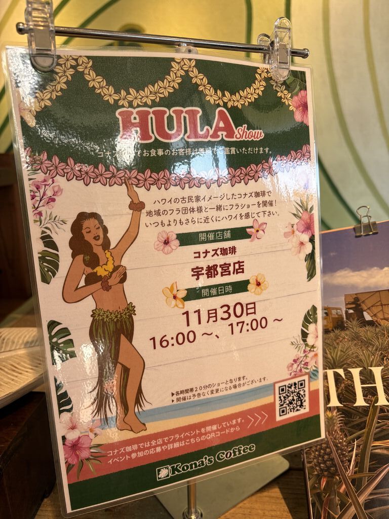 他県のコナズ珈琲が良かった為宇都宮店もお邪魔してきました。店内は広く各テーブルにはそれぞれ違う椅子がありテーブル同士の間隔も広く、お隣さんを気にせずにお食事、お話が出来て良い。宇都宮店はお店の中心にサークル状の台があり、イべント時に使用するとの事。定期的にフラのイベントあり。本日のコーヒーはセット価格で更にお得☕✨パンケーキは勿論!!盛盛~食べきれない!甘い甘じょっぱい!ロコモコにハンバーガーにメニューも豊富。目移りしてしまいますまた、利用したいと思います (訪問:2025/09/21)