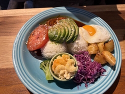 新年初の友だちとのランチ会はこちらに来ました。メニューを見ると迷いますが私はアボカドバーガー、友だちはアボカドロコモコです。デザートにアサイーボールのSサイズ、パンケーキを頼みました。私のバーガーが一口でがぶっとはできないぐらい大きさです。のっているクリームがおいしい!バンズもふわふわです。アサイーボールSサイズはコーヒーカップほどの大きさなのでたっぷり食べたあとにちょうどいい大きさでした。店内広々して明るくテーブルや椅子も個性的です。 (訪問:2026/01/08)