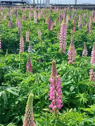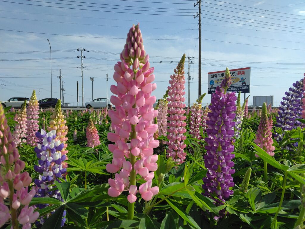 県道(2号)宇都宮栃木線沿い、栃木市国府公民館前にあるルピナスの花畑です。地元の方々が手入れされているそうです。ルピナスは藤の花を逆さにしたような形をしていて“昇り藤”の別名がありますが、紫・ピンク・白色などの花が空へ向かって伸びている様子は壮観です。訪問当日には“つぼみ”のような状態の花もあり、これからが見ごろになるでしょう。 (訪問:2026/04/18)