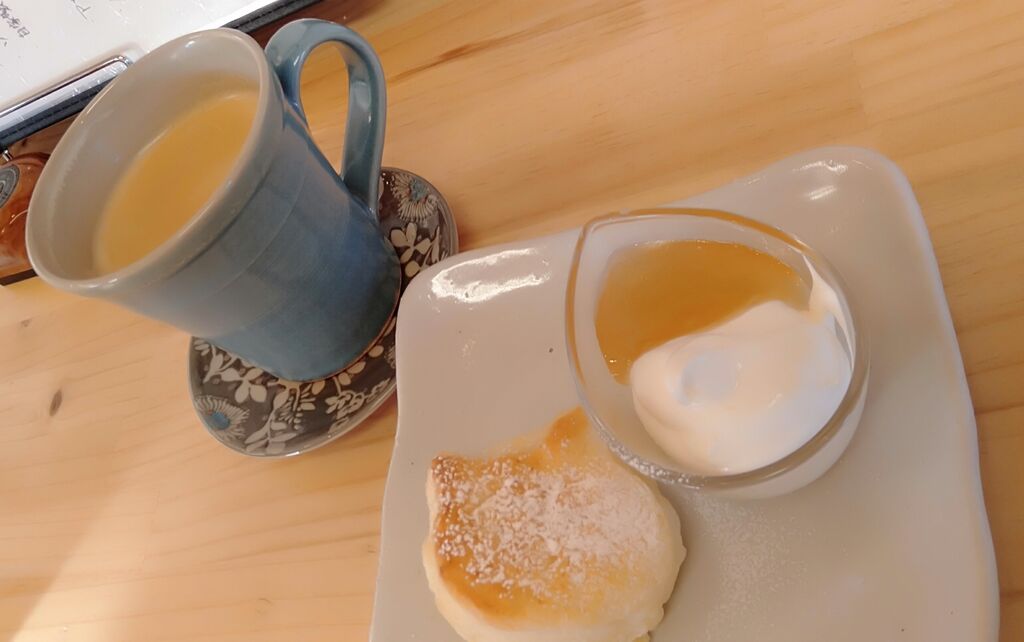 お茶の時間に伺いました。自分は堅焼きプリンを頂きました。アイスの乗った固めのプリン、上品なお味で、アイスと一緒に食べるとなお美味しいと感じました。同伴者が食べていた豆腐のバスクチーズケーキも豆腐のおかげなのか滑らかでしっとりしていて、とても美味しかったです。コーヒーは益子珈琲さんのものらしく、苦みも酸味もほどほどマイルドなお味で飲みやすかったです。よく見ると氷が猫の形をしています。凄い!店内は可愛らしい雰囲気で、あちこちに、なんか小さくて可愛いキャラクター達の姿が見受けられます。(サメのお料理を頂けるお店だから、カニちゃん…ってコト!?)ゆっくり寛げて、幸せな時間を過ごせました。是非また行きたいです。ありがとうございました! (訪問:2025/08/12)