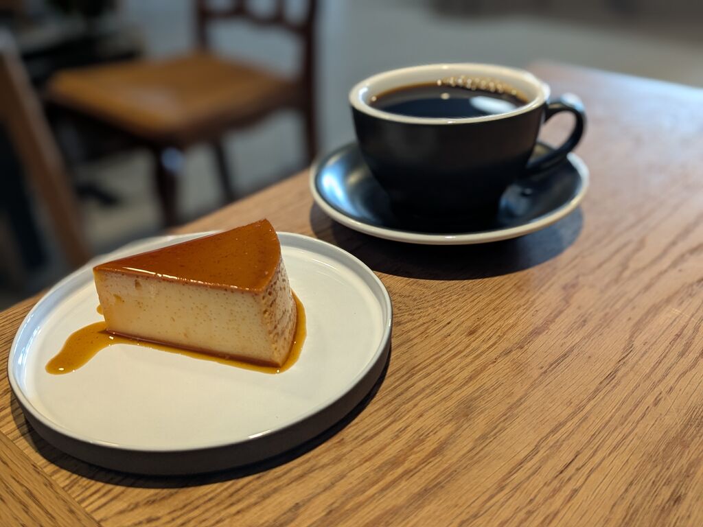 もみじ通りを散策中に発見したカフェです。本格的なコーヒーが飲めそうな気がして入ってみました。店内にコーヒーのよい香りが漂っていて、早くコーヒーを飲みたい衝動にかられます。本日のスペシャルティコーヒーの中から深煎りを注文。お供のスイーツは【プジン】ブラジル版プリンみたいなスイーツです。固めでカラメルは苦めな味でした。コーヒーも苦みが強いのですが口の中でスーッと消えていく感じで後味はスッキリしています。落ち着いた雰囲気の店内で美味しいコーヒーを頂けて幸せな気分になりました。ごちそうさまでした。 (訪問:2025/11/24)