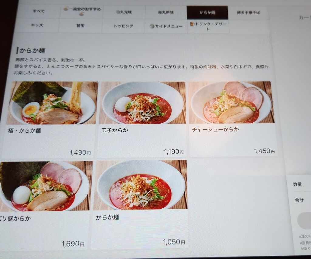 | 白丸元味 | 創業当時からの味を今に引き継ぐ、一風堂の豚骨ラーメンの本流であり、原点の味。シンプルな豚骨の旨味を極限まで抽出した豊かで香り高いシルキーなスープに、小麦本来の風味が香る博多の細麺がマッチします。 |