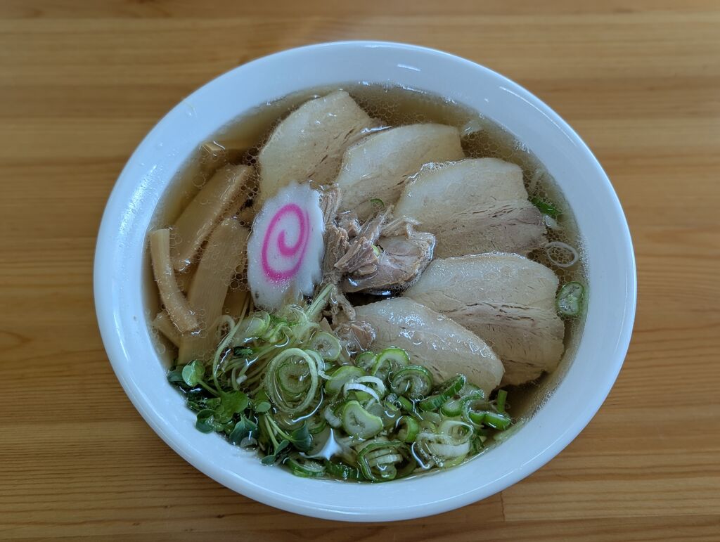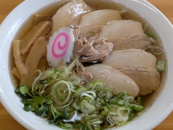 ネットで見ての初入店ですが久しぶりに大満足。11時半でしたが駐車場に2台。駐車スペースは4台ぐらい。今回は自分とかみさん、娘と孫(3歳弱の男児)の4人。注文は自分はネギラーメン大、かみさんはラーメン、娘はラーメン大、孫は母親からのおすそ分け、みんなでとイモフライ1本と餃子5個を一枚(3個もあったけど大人3人なので)。大人3人は麵のツルツル感、醬油も薄味感でとても食べやすくておいしかったです。最後までペロリ。驚いたのは孫の食べっぷりで娘の大盛りの約1/3を食べ、娘は普通盛りの量も食べられずで、美味しかっただけに本人はとても残念状態。こんなに自分の息子が食べるとは…と驚いていました。孫本人もさぞや美味しかったのでしょう。ラーメンの麺の量も多い感じで普通盛りのかみさんは食べ切れず、少し残った分は自分が食べました。こちらは大を頼んだのに追加ありに。また餃子も皮が薄くて食べ易く、中の餡も完全に皆さんの好みでペロリ。自分とかみさん、孫が各1個、娘が麵が足らずで2個。餃子の皮の好みはもちもち派と薄い派と分かれるところですね。イモフライも大人でイモを各1個、ソースが好みの甘辛で美味しかったです。飛び込みでしたが、これならまた来てもいいよね~と言いながら店を出ました。 (訪問:2025/07/12)