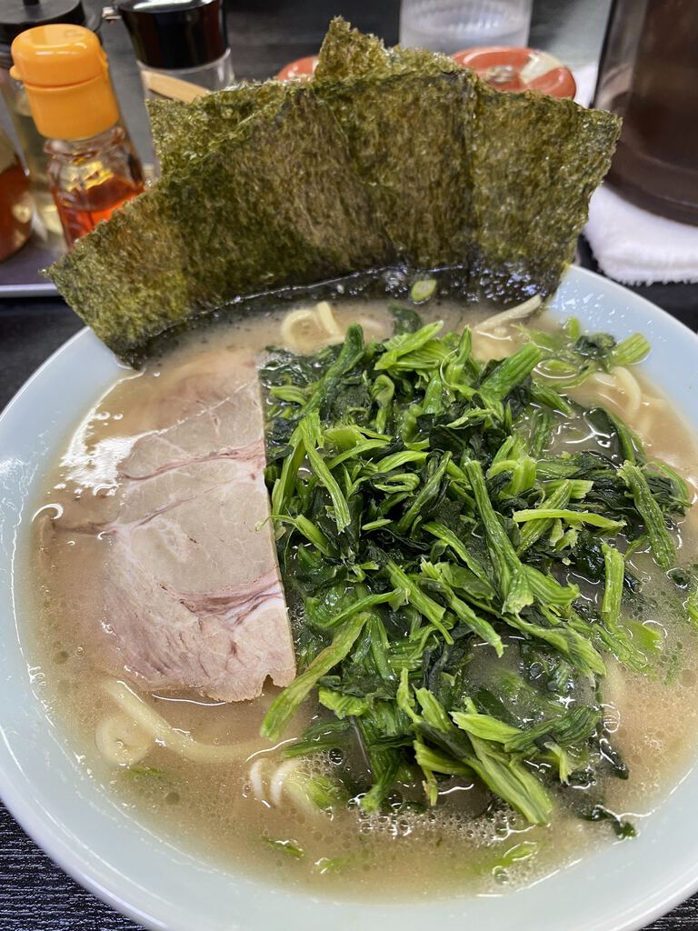 2度目のランチ訪問です。前回は冷やし中華だったので、今回は醤油小ラーメン(¥780),小ライス(¥60),ほうれん草トッピング(¥110)を注文。麺は普通硬さ、スープ薄く、脂少なめにしました。スープ味は好みで美味しいラーメンでした。スープにニンニクとライスを入れて味変も良かったです。家系ラーメン好きにはオススメです。 (訪問:2025/07/25)