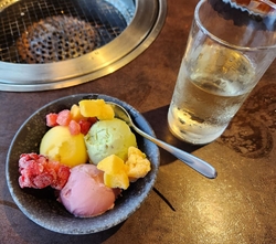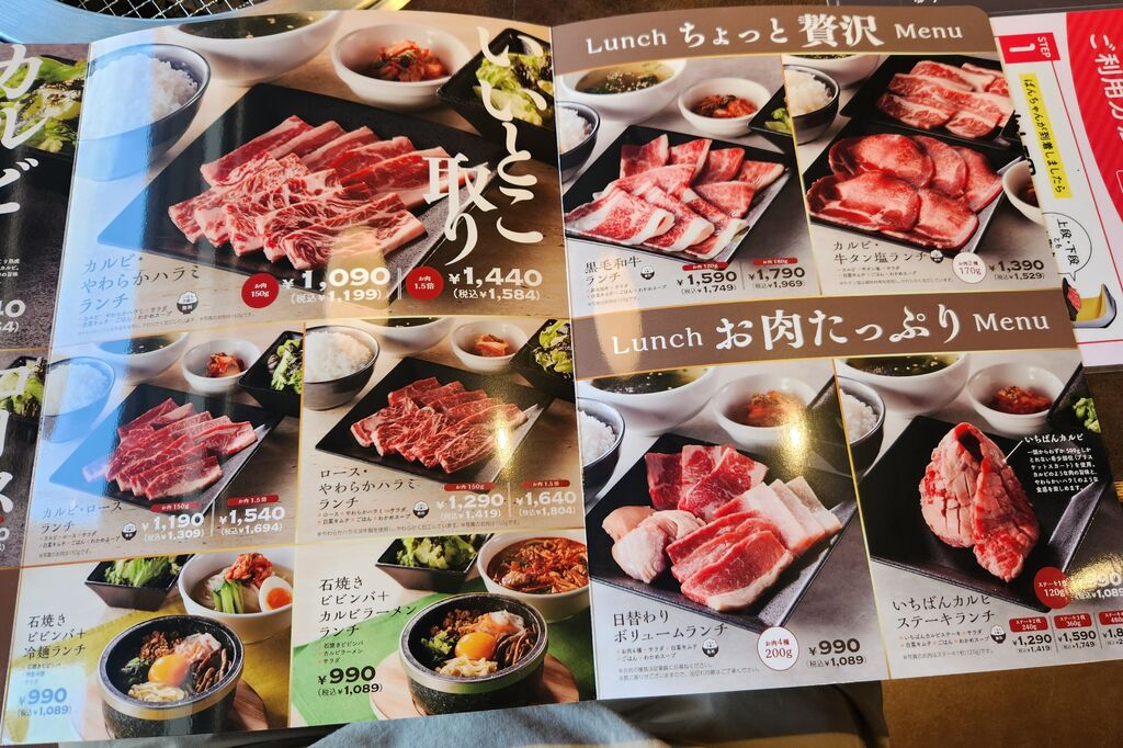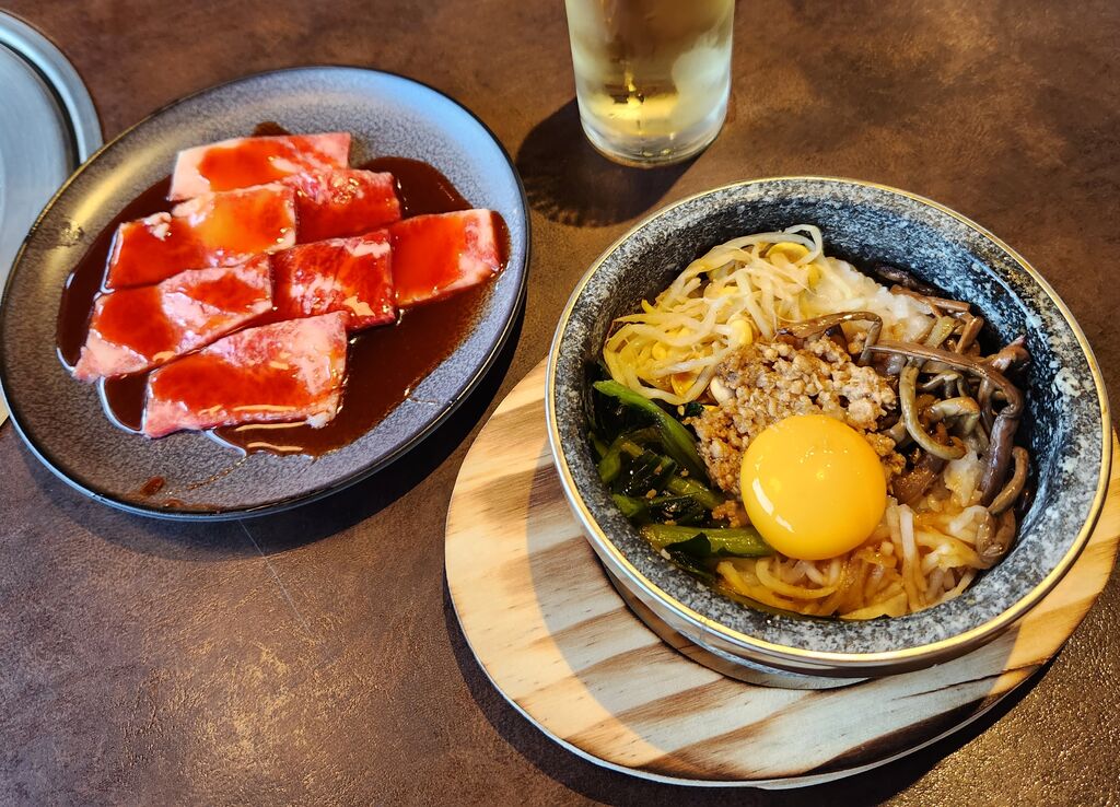 昨日(2023年8月4日)にオープンした焼肉屋さんに初訪問です。11時に予約して訪問しました。オープン初めての土曜日ですが開店待ちにはなってません。今はやりの食べ放題もありましたが、そんなに食べられないので単品で注文。「黒毛和牛カルビ 990円」「石焼ビビンバ 590円」「デザートバー&ドリンクバー 390円」黒毛和牛は柔らかくて旨みがあるお肉です。ドリンクバーも目の前だったので何回もおかわりさせていただきました。 (訪問:2023/08/05)