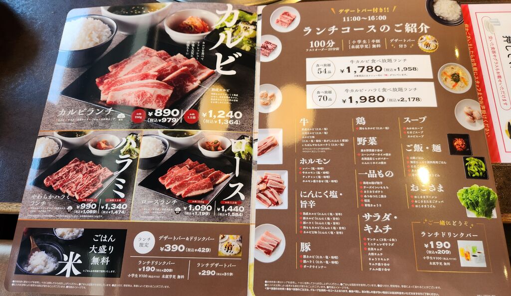 こちらのお店は、もとの「宝島 宇都宮長岡店」から代わり、2023年8月4日(金)オープンしたとのことで初めて、ランチに伺いました。開店時間の11時少し過ぎた頃でしたが、休日ともあり、既にお客さんが入っており、家族連れの人が多めな印象です。焼肉食べ放題、サラダや揚げ物、一品料理などサイドメニューも種類豊富でとても楽しめました。カルビ、ハラミ、タンとどれも美味しかったです。土鍋ご飯が絶品でお肉もたくさん進みます。タッチパネル注文とは別に各種バーがあり、セルフで好きなだけ食べられました。デザートバーにアイスバーでは、アイス数種類とソフトクリームにトッピングのチョコソース、白玉、あんこ、かき氷までありました。ドリンクバーもあり、なんとビールサーバーまでありました。色々楽しみたい方におすすめです。夜は24時まで営業しているとのことで、また伺いたいです。 (訪問:2025/06/30)