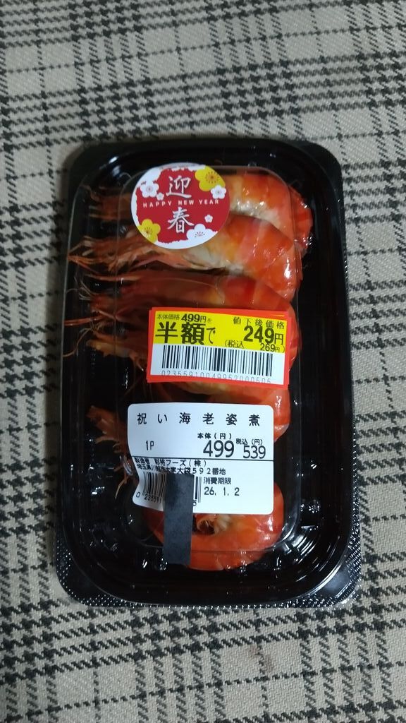 行ってみたかった【生鮮市場TOP】さんに初来店。お店丸ごと安価で、興奮しちゃいました。通りすがりの夕方、プラス1月2日のお正月...という事で、生魚・お寿司等は少々品薄でした。お刺身やお正月らしい海老の姿煮、お買い得な胡麻のぷちパンを購入して来ました。大分まんぞく^_^です。時間をかけて朝イチでゆっくり買い物したいので、また行ってきます。 (訪問:2026/01/02)