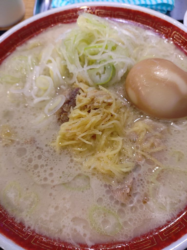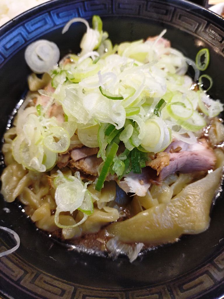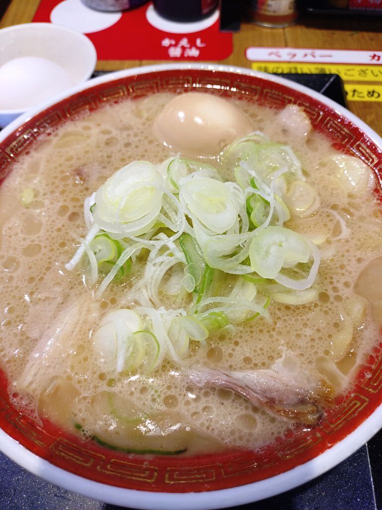 話題の多加水麺を食べに伺いました。おすすめの【太旨ネギラーメン】を注文。ネギラーメンにしたけど、刻みねぎは取り放題、生玉子も一個まで無料の大盤振る舞いでした。極太麵はもちもちで、クチコミにもありましたが”すいとん”を思わせる食感です。卓上の色々な調味料で味変も可能ですので、好みの味を探すのも楽しいかもしれませんね。ごちそうさまでした。 (訪問:2025/10/30)