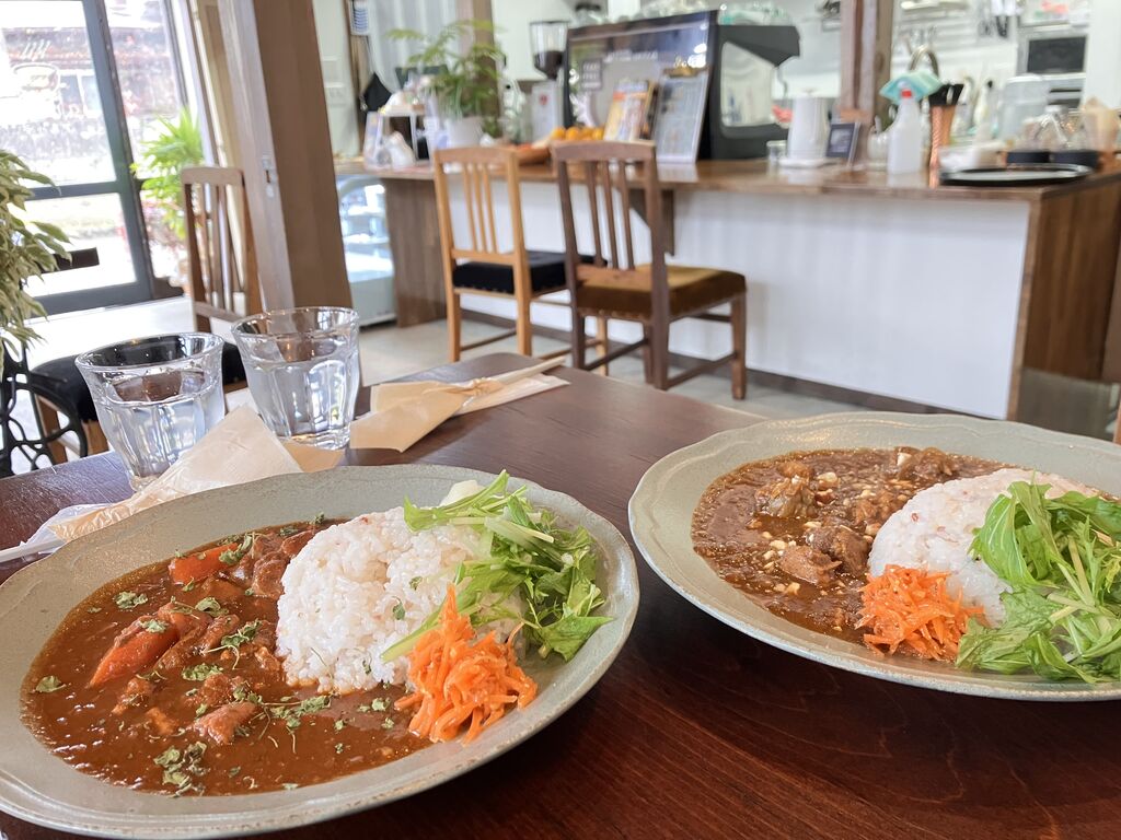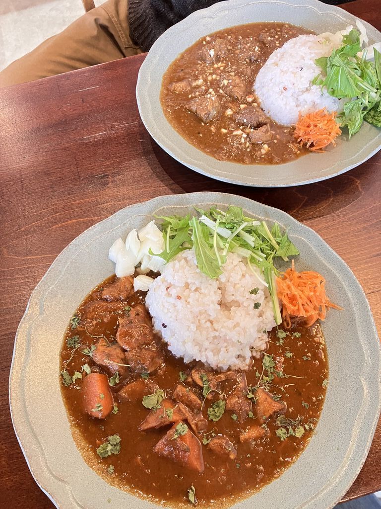 肌寒い日曜日、11月になってカレーのメニューが変わったとのことで、食べ逃してはならない!と思い、神様と一緒に伺いました。私は「アルッテ特製チキンカレー1100円」を、神様は「ポークビンダルーカレー1200円」を注文。先にお会計を済ませ、席について待っていると、あっという間にカレーが運ばれていました。先月まではキーマカレーだったものが、今月からはチキンカレーになっていました。味噌を使ったベースのお味は変わりなく、ほろほろと崩れるやわらかな鶏肉とマッチしてとても美味しかったです。神様の方も味見させてもらいましたが、こちらは酸味のあるカレーで、また違った味わいが楽しめます。ひとりで来たら、絶対2種盛り頼んじゃいますね。食後には、新メニューの「アップルシナモンラテ700円」をいただきました。ふあふあホイップされたクリームの上には、甘く煮たりんごとシナモンが振りかけられています。中にもりんごが入っていて、あたたかな優しさがお腹も心も満たしてくれました。店内には、ひとりでコーヒーを楽しまれる年配の方や、食事と会話を楽しむ若い女性グループなど、皆さん思い思いの時間を過ごされていました。私たちも、レトロな店内を眺めながら、ゆったりとした時間を過ごすことができました。美味しい幸せをありがとうございました。ごちそうさまでした~。 (訪問:2025/11/09)