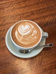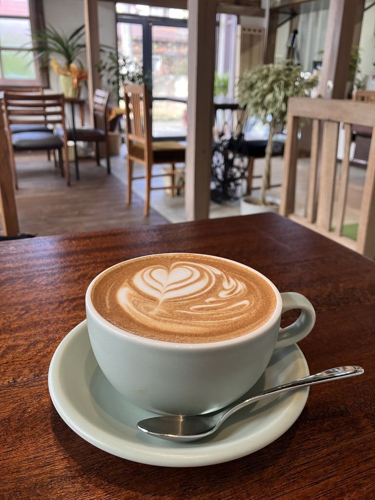 11月最初の日曜日。たまには歩いて市内を散策しようと、烏山線に乗って烏山駅までやってきました。ぐるりとひと歩きしてから、ちょっと休憩しようと立ち寄ると、既に先客がいらっしゃいました。まだ朝の肌寒い時間帯だったので、店内の暖かさにほっとします。今回は「カフェラテ600円」をいただくことに。ミルクの甘さとコクにうっとり。冷えた身体に優しくしみ渡ります。普段、コーヒーはブラックしか飲まないのですが、カフェラテの優しい美味しさに新しい出会いを感じることができました。美味しい幸せをありがとうございました。ごちそうさまでした〜。 (訪問:2025/11/02)