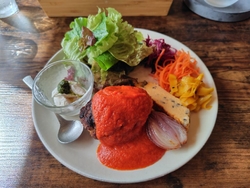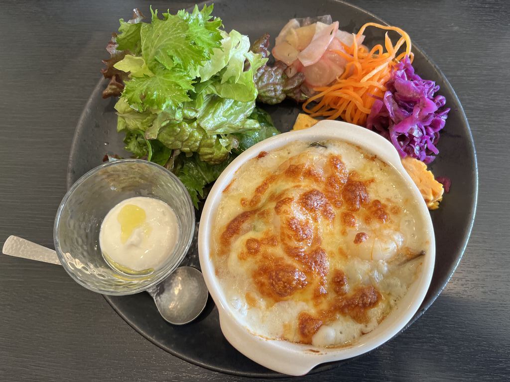 ランチが3種類ありました。私はグラタンのランチを選択。最初にカボチャのスープが運ばれて身体がポカポカ。次にワンプレートに盛り盛り新鮮野菜とお野菜3種とフワッとした美味しいたまごのおかず、手作りリコッタチーズが運ばれ、別できたパン(フォカッチャ?)につけて食べました。どれも美味しくてまた来店したいと思いました。店内には美味しそうな焼き菓子も並んでいましたよ。次回はデザートも食べたいです♪ (訪問:2025/12/07)