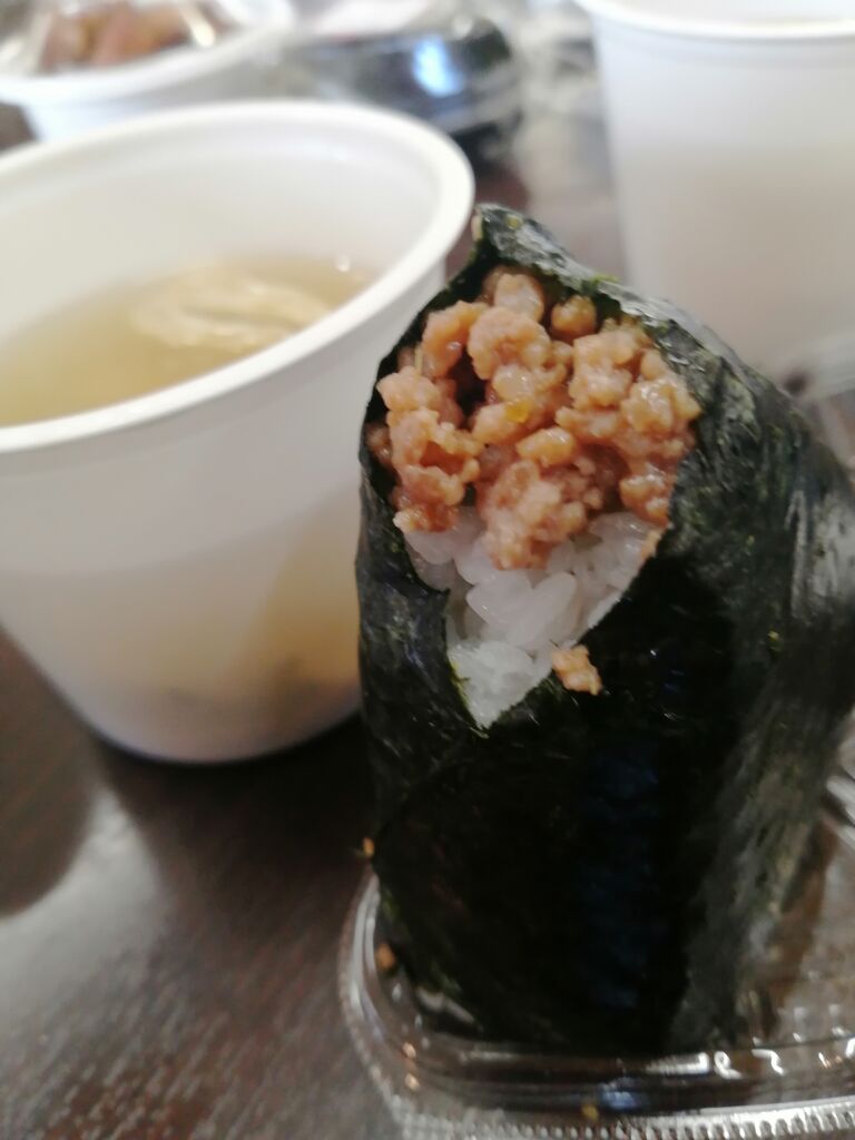 [道の駅きつれがわ]に来て丁度昼時だったのでフードコートでお昼を食べることに♪おにぎりやさんの前には行列が!いろいろな種類の美味しそうなおにぎりがあります。おにぎり2個を購入すると+¥300で[からあげ]と[味噌汁]が付く[おかずセット]があるのでので[ツナマヨ][高菜][豚そぼろ][鮭]の4つのおにぎりと[おかずセット]×2にしました。お米も具材も美味しかったです。ごちそうさまでした•ᴗ•ꕤ* (訪問:2026/02/01)