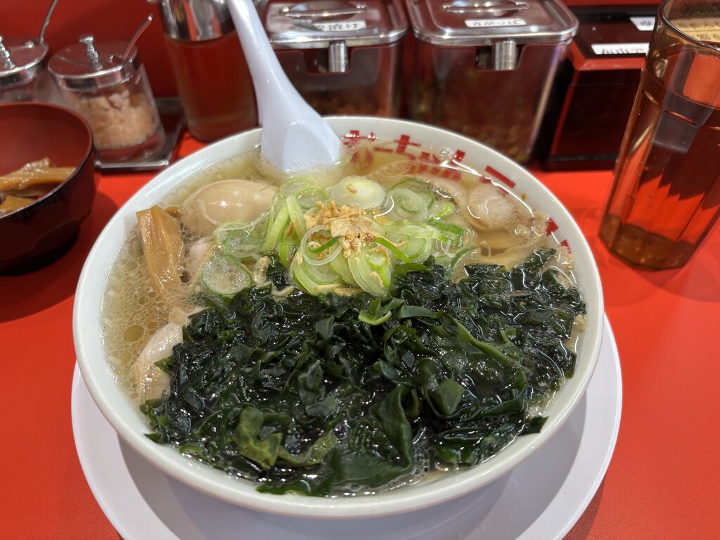 お昼にむーちゃんラーメンへ。しおラーメン、メンマ、わかめ。ミネラル成分たっぷりなスープにモチヤワ麺が絡み美味しかったです!極太メンマも美味しく、並盛りでも腹パンです!わかめは必須ですね!いつも有難う御座います! (訪問:2026/01/17)