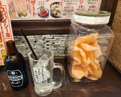 2025年3月16日、大通りにオープンした居酒屋さんに初訪問です。オープン前ですが焼肉かしら屋さんにきた時に見つけて気になっていました。注文は「お通し えびせん食べ放題 399円」「鶏皮焼き 390円」「鶏軟骨の梅水晶 399円」「ホッピーセット 299円×2」「ホッピー中 99円×2」「レモンサワー 50円」お通しのえびせん食べ放題の量にびっくりでしたがドリンク、おつまみも安くて更にびっくりでした。 (訪問:2025/03/28)