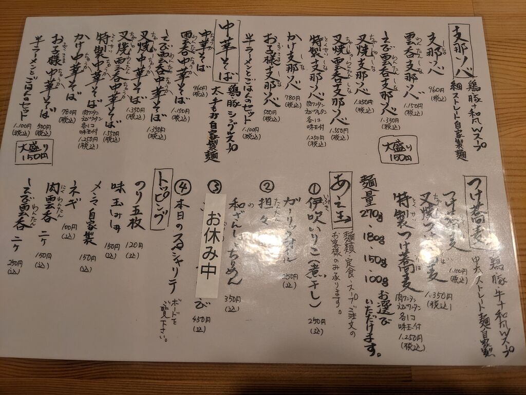 昨年オープンして気になっていたみくもさんに初訪問。よく並んでいるのを見ていたのでオープン前に到着。店内は座席、テーブル席、カウンターと広い!限定メニューのからすみと海老の潮蕎麦と特製中華蕎麦、お子様支那蕎麦とローストビーフ飯を注文。支那蕎麦は鶏、豚+和風のWスープで中華蕎麦は鶏、豚のシングルスープ。限定の潮蕎麦は海老の風味でどれも違ったスープでそれぞれ美味しかったです。らーめん、ごはんものそれぞれ種類が多くどれにするか迷ったし、和え玉も美味しそうで気になるメニューがあり過ぎたのでまた行こうと思います。 (訪問:2026/01/11)