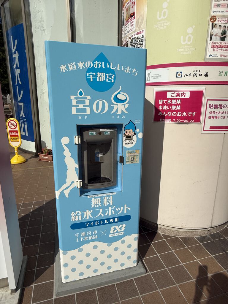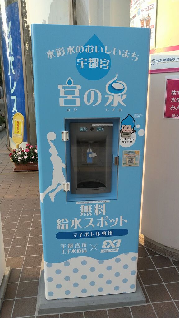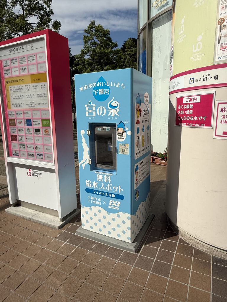 宇都宮市のおいしい水道水をマイボトルに無料で補充できる給水スポットです
