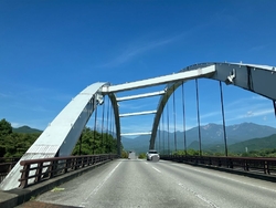 普段は、橋を写す事は、滅多にありませんが、橋のフォルムと日光の美しい山々と周りの情景に感動し思わずシャッターを切った次第です(^^)橋を抜けると電線もない風景画のような世界観‼︎季節ごとに違った美しさを感じられる場所だと思います(ღˇ◡︎ˇღ) (訪問:2025/08/30)
