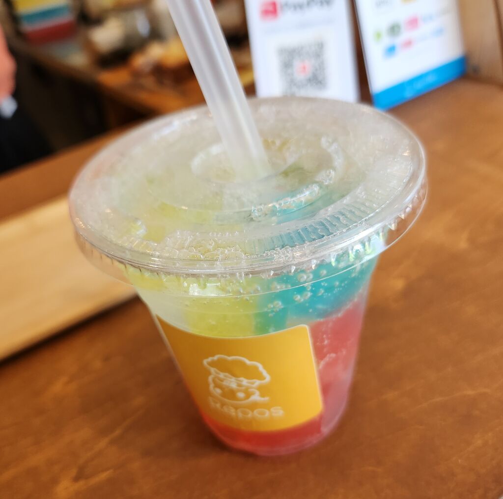 2025年7月26日オープンのカフェに初訪問です。今日はプリンがなかったのでドリンクにしました。注文は「ルポソーダ 550円」色とりどりのゼリーとソーダが入っていて甘過ぎずにさっぱりしています。 (訪問:2025/08/21)