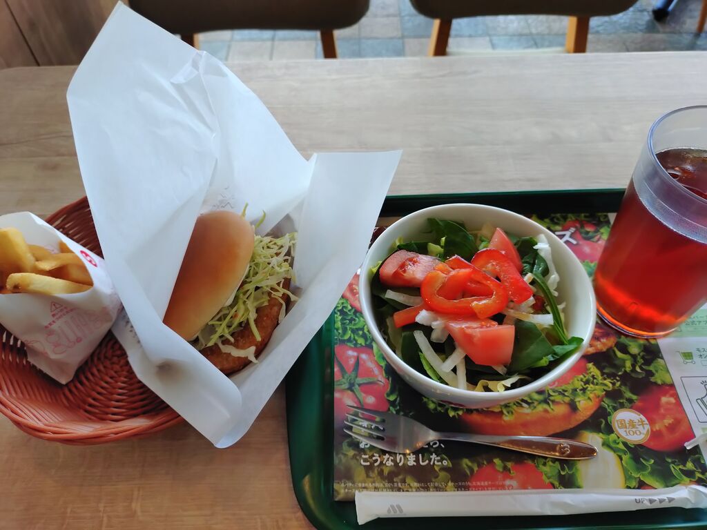 ランチ時に利用しました。ガーリックトマトの鳥竜田バーガーが期間限定であったのでそちらを注文。アイスティーとサラダをセットで。おいしくいただきました。ご馳走様でした! (訪問:2026/01/30)