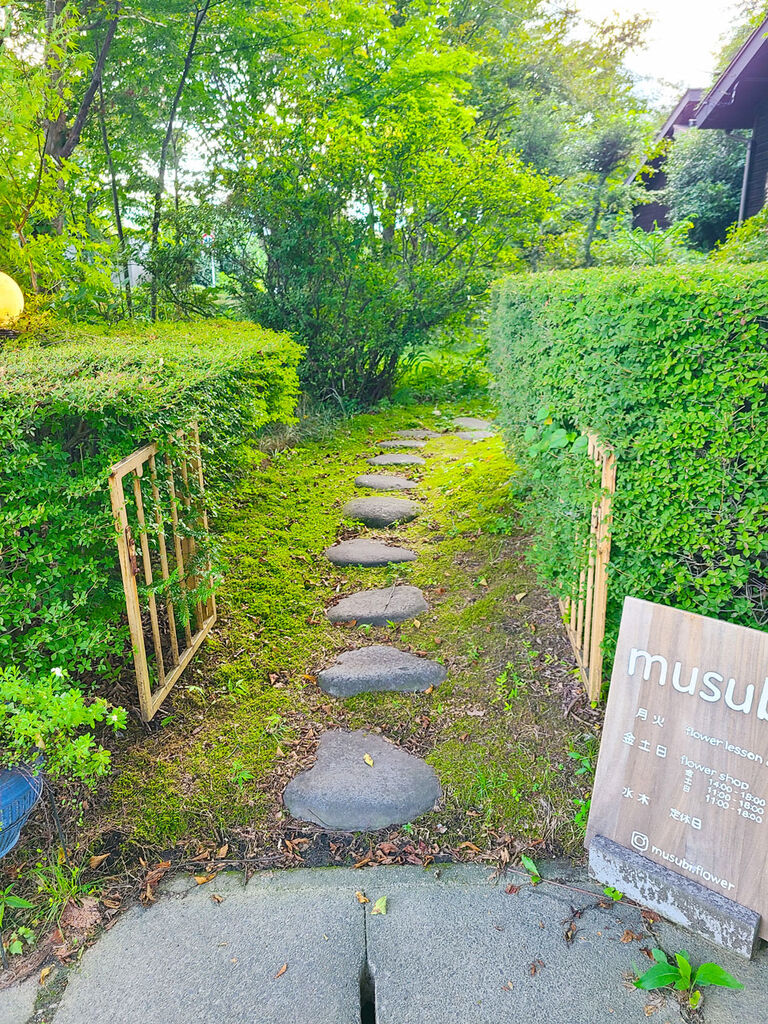 「musubi」は、季節感を大切にした約30種類の花や珍しい植物が並ぶフラワーショップ。1本から購入でき、アレンジメントや花束の注文も可能です。少人数制の1dayフラワーレッスンも開催しており、初めての方でも安心して楽しめます。