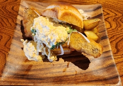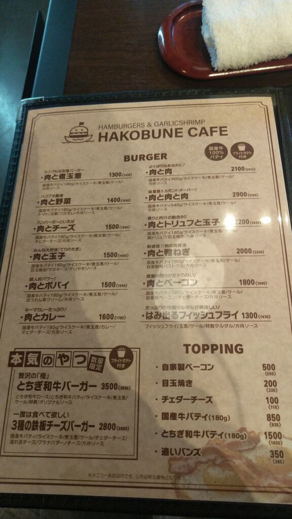 2025年8月17日オープンのハンバーガー屋さんに初訪問です。とち、フラ~poolさんの投稿で知り訪問しました。注文は私が「肉とチーズ 1,500円」「ジンジャーエール 300円」。妻が「はみ出るフィッシュフライ 1,300円」「烏龍茶 300円」。肉々しいパティです。バンズも香ばしくてボリュームがありました。 (訪問:2025/08/24)