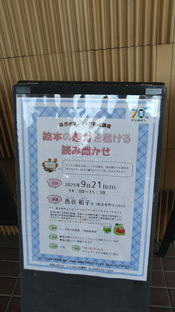 NEW【かみのかわサンフラワー祭り】鑑賞の後、調べ物があったのと、あまりの暑さに涼みたいとの気持ちもあり初めて利用しました。各種イベントも開催されているようです。館内には、あまり見かけた事のないスペースがあり、感動しました。幼児向けの絵本コーナーが大きくてひとつの部屋のようになっていて、大きなリビングのようでした。半円形になっていて子供さんがゆっくり読書を出来るスペースで、こんな図書館があったら子育てしやすい...と思い感心しました^_^ (訪問:2025/08/24)