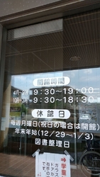 月曜日 図書整理日(蔵書点検日 毎年秋頃4日前後)、年末年始(12/29~1/3) ※臨時休館・短縮開館はホームぺージ等でお知らせいたします ※定休日が祝日の場合は営業 |
