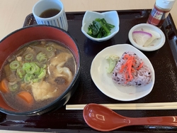 祝日の昼どきに夫婦で訪れ、場内にあるセルフサービスのレストラン「なすとらん」で食事をとりました。最初にレジで注文と会計をすませ、料理が出来上がると呼び出しがあります。今回は「和牛コロッケ定食」と「な・すいとん定食」をいただきました。コロッケはジャガイモのホクホク感が抜群です。小麦粉の風味が感じられる“すいとん”は、あっさり醤油味の“つゆ”が良く合います。客席からは茶臼岳などの那須連山を眺めることができます。この雄大な風景が、料理を更に美味しく感じさせてくれました。 (訪問:2026/02/11)