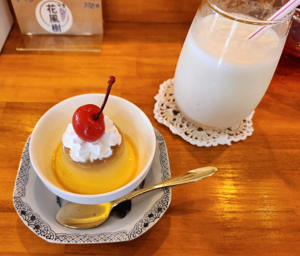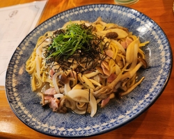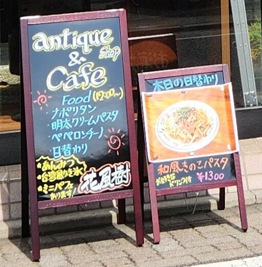 2025年8月22日オープンの骨董品カフェに初訪問です。マイレビ様の口コミで知り訪問しました。注文は私が「ペペロンチーノ 1,300円」ドリンク付き。「バナナミルク」「プリン 350円」妻が「和風きのこパスタ 1,300円」ドリンク付き。「コーヒー」「プリン 350円」パスタのボリュームありましたがピリ辛で大好きなペペロンチーノだったので完食です。 (訪問:2025/09/28)
