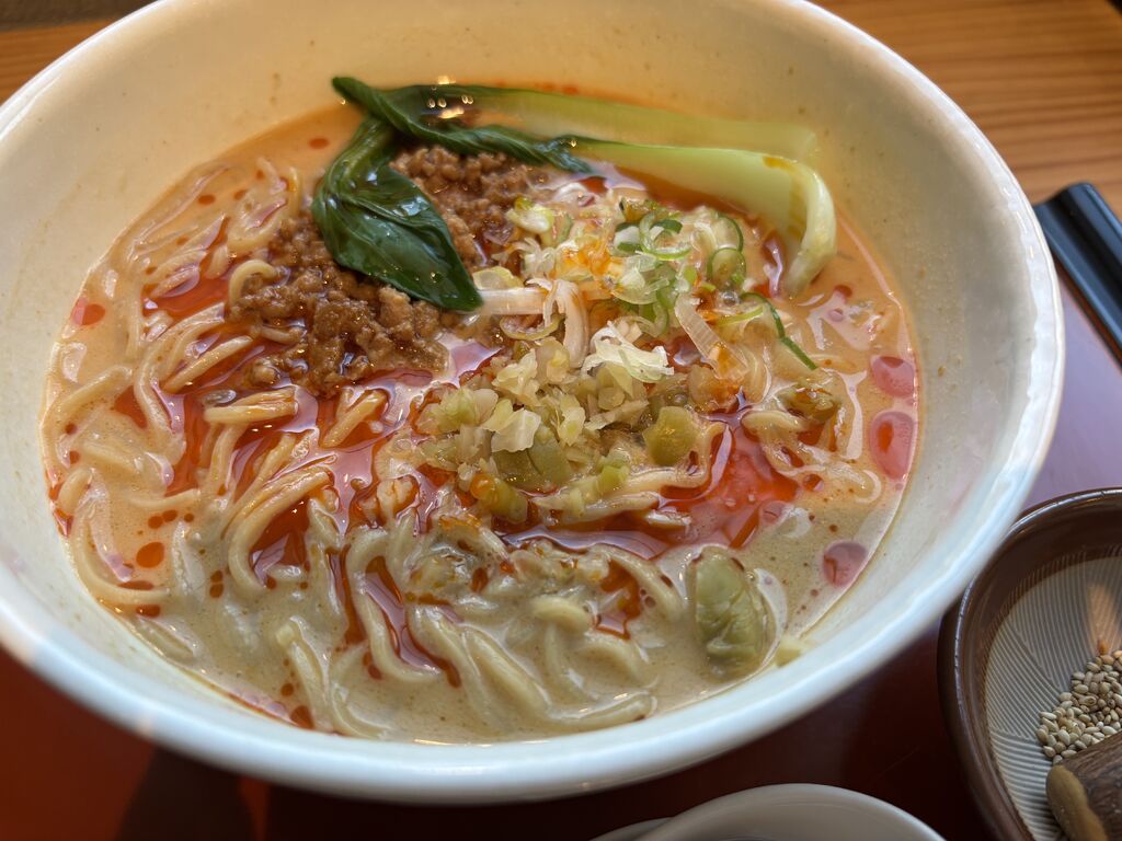 大好きな担々麺を食べに伺いました♪入店して券売機で麻辣担々麺とサービスの半ライスを注文しました。カウンターから外が見え待っている間も気持ちが良かったです♪クリーミーなスープにゴマの風味、麻辣の刺激がとっても美味しいです!ライスをスープに浸しサラサラと美味しく一気に食べてしまいました。定期的に通いたいお店です♪ (訪問:2025/09/19)