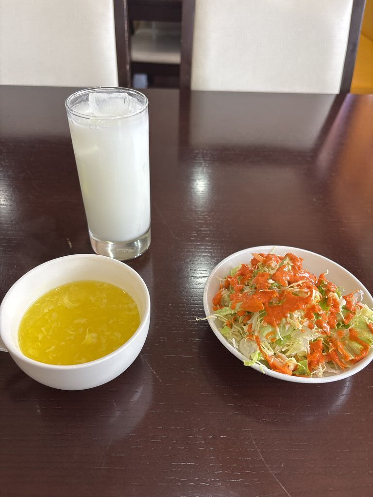 「今日のランチどうする?」…「アルナパレスに行かない?」…「あ~!行ったことないから行ってみた~い♪」…ってなことで行ってきました。はじめましての【アルナパレス矢板店】さん。二人とも《ダブルカレーセット(サラダ・スープ・プレーンナン・チキンティッカ・ターメリック炒飯・ドリンク付)》をお願いしました。2種類のカレーは[バターチキンカレー]と[ほうれん草チキンカレー]を選択。辛さは[2]で。選べるドリンクは[マンゴーラッシー]に。[ナン]はセットのプレーンナンじゃなくプラス料金の[チーズナン]に変更しました。待つことなくサラダとスープが登場し次にメインです。ハンパないほどチーズがたっぷりな[チーズナン]はボリューム満点!選んだカレーは味も辛さもG͜͡o͜͡o͜͡d͜͡(*ˊᵕˋ*)੭ ੈ❤︎でした。[マンゴーラッシー]が美味しかったので違う味のラッシーも飲みたくなって[ストロベリーラッシー]をおかわりしました。本格的なカレーが食べたくなったらまた来ま~す。ごちそうさまでした•ᴗ•ꕤ* (訪問:2026/01/31)