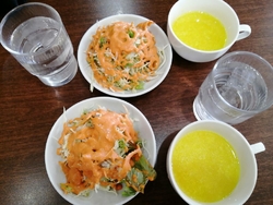 娘が「カレー屋さんの、ナンが食べたいな〜!」と言い…矢板市にあるカレー屋さんに行こう〜♪と誘われました。私は来店したことがなかったので…スグに行く気満々に!!初来店ですー。セットメニューの【ダブルカレーセット】を注文しました。好きなカレーが2種類選べたので、『バターチキンカレー』と『シーフードカレー』…好みの辛さ(甘口・中辛・辛口・大辛)から中辛をチョイスしました。注文した品がテーブルに届いてびっくり(・・;)ナンが大きい〰️!!アツアツ!!甘みがあって美味し〜♪もちろんカレーも美味しくて♡セットは色々付いていて、お腹いっぱいです!お店の方は皆インドの方かな?(言葉は大丈夫ですネ。)帰りにクーポン券付きのチラシを頂きましたよ。お腹をすかせて、また食べに行きたいと思います。ごちそうさまでした! (訪問:2025/10/12)