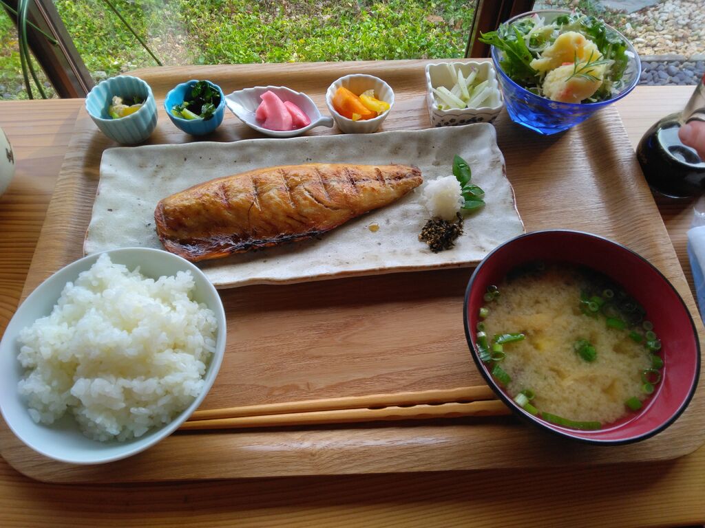 古民家をリノベーションした素敵なお店°˖✧◝(⁰▿⁰)◜✧˖° 数ヵ月前に、オープンされたことを知り、行ってみたいと思っていました(●ˇ∀ˇ●) やっと伺う機会に恵まれ、「サバの塩焼きセット ¥1,200」ドリンク・デザート付き、¥+300を注文(o゜▽゜)o☆ 整列した小鉢たちに収まった副菜たちは、入口の看板にあった「自家栽培野菜」かな... カラダが喜ぶヤツですねᕦ(ò_óˇ)ᕤ ふっくらとして脂ののったサバは、鮮度の高さが伺えますo(*°▽°*)o 豆腐や油揚げのお味噌汁も、ホッとする優しいお味(〃▽〃) ドリンクとデザートをセットにしても、+300は、嬉しい(⋈◍>◡<◍)。✧♡ 飲み物は、数種類から選べます(๑•̀ㅂ•́)و✧ スウィートポテトと柿、紅茶(コーヒー)が届きましたヾ(≧▽≦*)o 手作り感溢れる、ほのぼのとした家庭料理( *︾▽︾) メインからデザート、小鉢たちに至るまで、最高の品々☆*: .。. o(≧▽≦)o .。.:*☆ 広々とした静かな空間で、センスを感じる器たちも、五感を楽しませてくれる、欠かせないアイテムになっています(((o(*゜▽゜*)o))) 帰り際には、デザートで美味しかった「柿」と「自家製しそ唐辛子味噌」も購入OwO 店主さんは、とっても親切な方でした(≧∀≦)ゞ お店に、ほど近い橋は、工事中な上、かかさんの入り口は、急勾配になっているので、少し注意が必要ですಠ_ಠ しかし、必ず再訪したい最高のお店と出会えました(⋈◍>◡<◍)。✧♡ (訪問:2025/10/30)