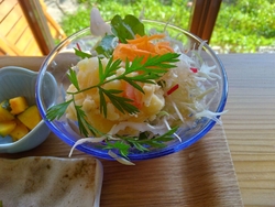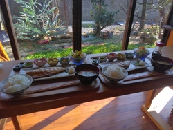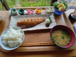 2回目の訪問。1回目伺った時より、お客さんが多く、賑わっていたなぁ...°˖✧◝(⁰▿⁰)◜✧˖° 初めて伺った際に頼んだ「脂ののったサバ」の美味しさが忘れられず、今日も「サバの塩焼きセット」を注文(*Φ皿Φ*) 先客も、たくさんいらっしゃったので、20分くらい待って提供されました(o゜▽゜)o☆ 前回とは違った小鉢の内容になってる(〃▽〃)♡ 「自家栽培野菜」を使用し、季節ごとに、工夫を凝らした料理が味わえるのは、カラダもココロも、とってもハッピーになれます(⋈◍>◡<◍)。✧♡ 今日は、デザートは頼まなかったのですが、隣のテーブルの方が頼まれたようで、チラッと覗かせていただくと、「シフォンケーキ」のようでしたq(≧▽≦q) デザートも、季節ごとに変わる様子。お茶や、お冷は、セルフで、おかわりも可能(♥´艸`♥) 木のぬくもりを体全体で感じることのできる、店内は、穏やかなBGMもかかり、とってもアットホーム(●ˇ∀ˇ●) 帰りには、入口付近に置いている、野菜や果物のなかから「大根」と「柿」を購入させてもらいましたOwO 店主さんの人柄がバツグンに良く、初対面でもとっても喋りやすく、笑顔でおもてなしをしてくださいますo(*////▽////*)q 思わず「ただいま!!!」と口にしてしまいそぅな、心も体も幸せで満たされるお店デス(((o(*゜▽゜*)o))) (訪問:2025/11/27)