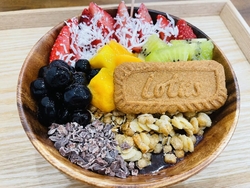 当店ではアサイーのねっとりとした食感を出すことを大切にして、アサイーボウルを作っています。そのアサイーボウルをハワイアンの雰囲気のある店内でお召し上がりください。またテイクアウトも可能です。