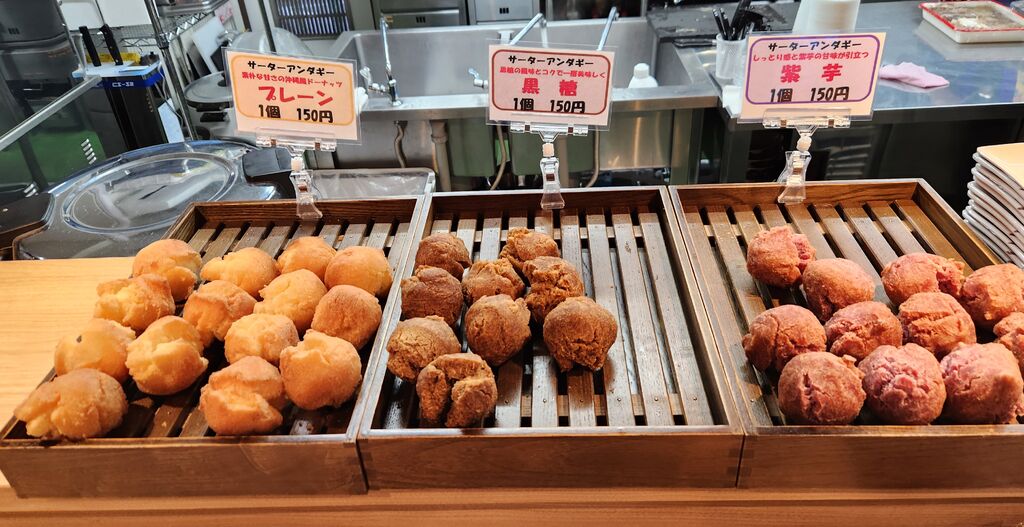 2025年12月5日大谷町にオープンしたソーキそばのお店に初訪問です。妻も好きなので日曜日に一緒に訪問しました。注文は私が「本ソーキそば 1,100円」「海ぶどう 280円」「じゅうしい 280円」。妻が「三枚肉そば 1,300円」「海ぶどう 280円」。インスタフォローでサーターアンダギーサービス。私が「プレーン」、妻が「黒糖」。バラと骨付きバラを交換して両方楽しめました。ソーキそばも量があってお腹一杯です。 (訪問:2025/12/14)
