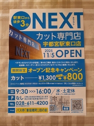 栃ナビ!NEW OPEN のお店で紹介されていた「カット専門店NEXT宇都宮駅東口店」さんに初訪問しました。新店舗オープンキャンペーンで、税込800円(男女とも)でカットする事ができます!この物価高な中、とってもありがたいですね。フレンドリーな店長さんが丁寧にカットしてくれます。仕上がりもばっちりですよ。しばらくはこのオープンキャンペーン価格でOKだそうです。宇都宮駅東口からとっても近く、電話での順番取りが可能なので、買い物のついでなどに便利だと思います。おすすめです。 (訪問:2025/12/26)