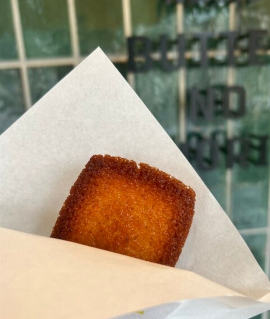 「日光へ来たからにはちょっとその辺をプラプラしよ~よ♪」…メイン通りもお店の前もお店の中も人・人・人です!この年の瀬にこの観光客…さすが日光ですね~♪こちらのお店はバタースイーツ専門店【バターの杜】さん。バターを使ったスイーツがたくさんあります。[バターフィナンシェ][バターソフト][バターサンド/あんバター/キャラメルバター/いちご][バターパンケーキ][バターパルフェ]…どれも美味しそ~♪[バターパルフェ]が気になりましたがSOLD OUT…残念。なので[バターフィナンシェ]をひとつ購入しました。普通のフィナンシェより少し大きめ…バターの香りが美味しそうです♪店内でじっくりと焼き上げたとあって表面はカリカリ感があり、中はしっとりとしていてジュワ~ンとバターが滲み美味しいです。食べ歩きにもちょうど良いサイズ感。これは手土産にも良さそうですね。ごちそうさまでした•ᴗ•ꕤ* (訪問:2025/12/29)