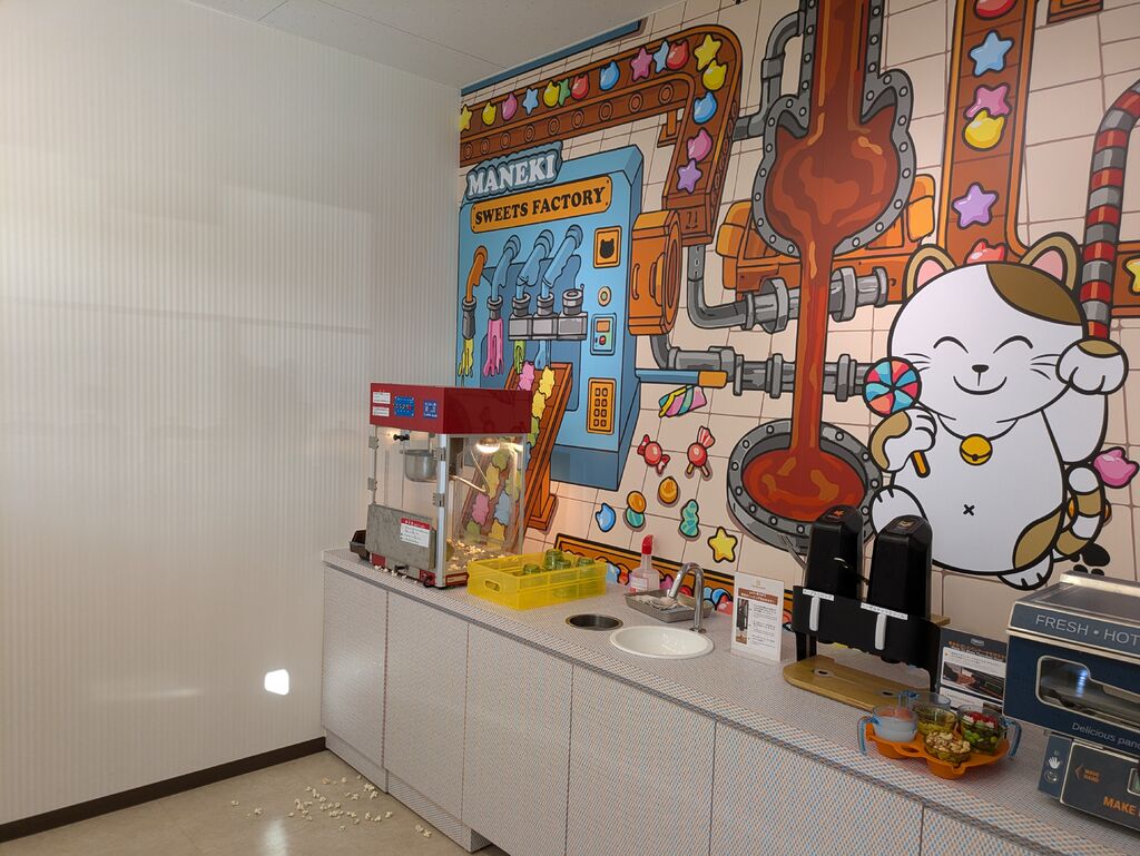 地域唯一というおかしバーを楽しみにカラオケしてきました。おかしバーは大人1人550円でつけることができます。グミやチョコレート、ナッツ、パンケーキ、ポップコーンなどを楽しむことができます。ドリンクバーやソフトクリームとあわせて、より居心地の良い時間を過ごすことができました。 (訪問:2026/01/25)